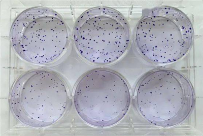 單個(gè)細(xì)胞在體外增殖6代以上(時(shí)間約1周以上),其后代所形成的細(xì)胞群體,稱為集落或克隆。每個(gè)克隆含有50個(gè)以上的細(xì)胞,大小在0.3-1.0mm之間。細(xì)胞接種存活率只表示接種細(xì)胞后貼壁的細(xì)胞數(shù),但貼壁后的細(xì)胞不一定每個(gè)都能增殖并形成克隆。只有同時(shí)具有貼壁和增殖活力的細(xì)胞才會(huì)形成克隆。